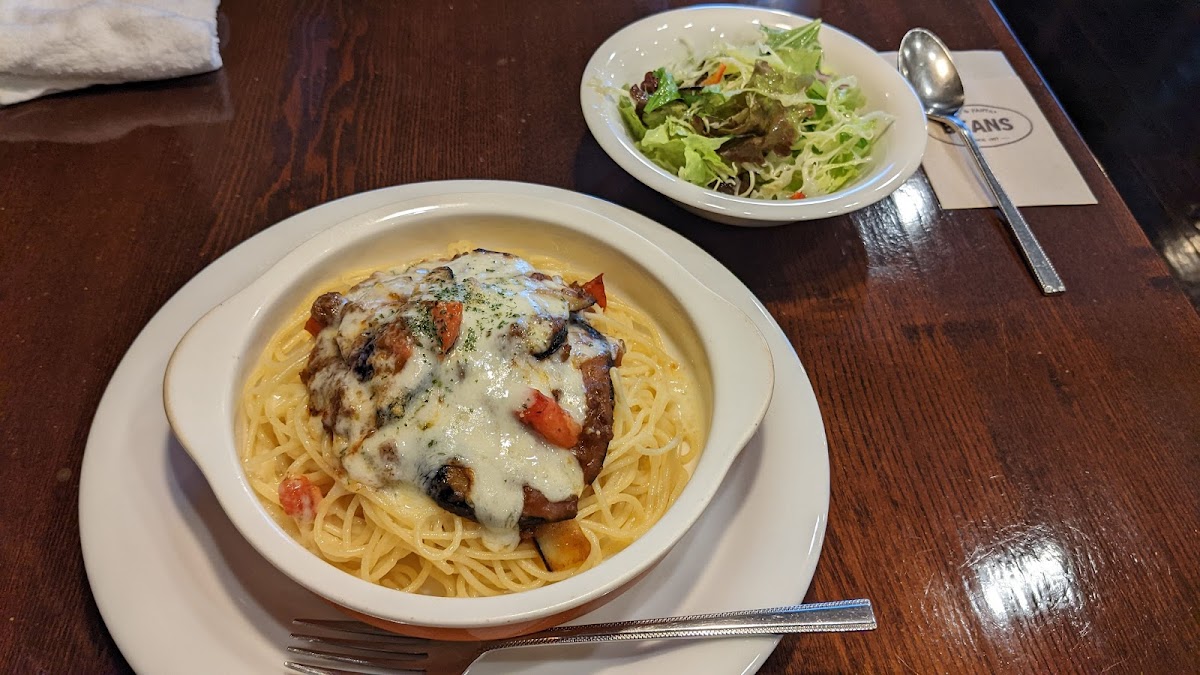 Cozy restaurant vibes. Tasty food, sizable food for very decent prices. We had: Mushroom bacon pizza - perfect amount of toppings, the base was very tasty and crunchy thin crust. Eggplant Bolognese was really really good, super unique japanese flavour profile and a big serve. Baking adds a nice texture to the pasta. Bacon mushroom onion pasta set was massive serve all together. Salty, savoury and delicious. Very much recommend